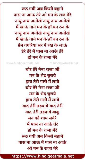 Lyrics of Ruth Gayi Ab Kisi Bahane - रूठ गयी अब किसी बहाने