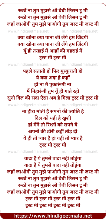 Lyrics of Rutho Naa Tum Mujhase, O Baby Listen To Me - रूठों ना तुम मुझसे ओ बेबी लिसन टू मी