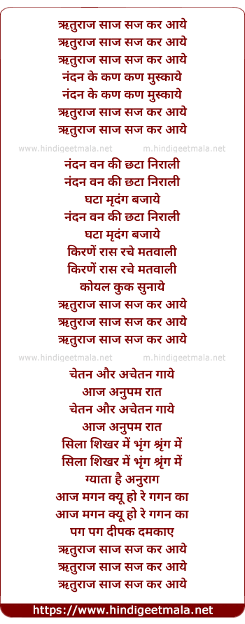 Lyrics of Ruturaj Saaj Saj Kar Aaye - ऋतुराज साज सज कर आये