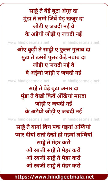 Lyrics of Saadde Te Vede Butaa Angur Daa, Jodi E Jachadi Nai - साड्डे ते वेड़े बूटा अंगूर दा, जोड़ी ए जचदी नईं