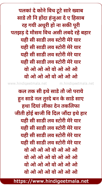 Poetic Translation - Lyrics of Saadi Love Story (Sad) - पलकां दे कोने विच टूटे सारे ख्वाब