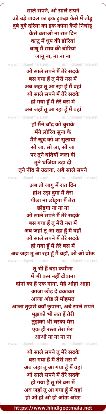 Lyrics of Saale Sapne - साले सपने