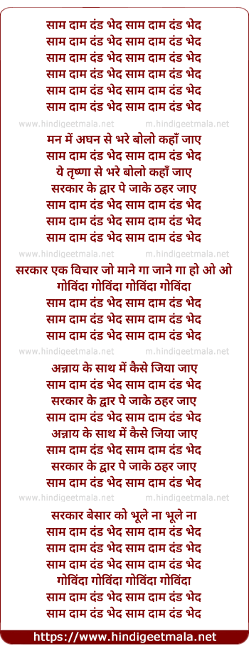Lyrics of Saam Dham Dandh Bhedh - साम दाम दंड भेद