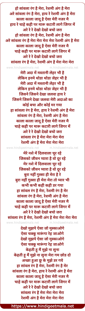 sanwla rang hai mera, reshami ang hai mera mera mera
