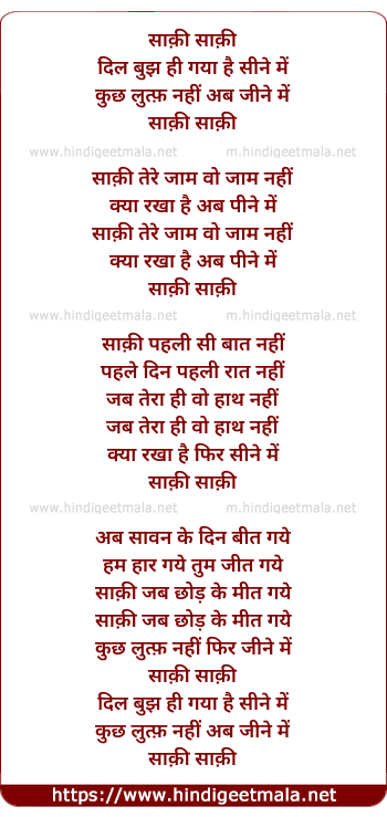 Lyrics of Saaqi Saaqi Dil Bujh Hi Gayaa Hai Sine Men - साक़ी साक़ी
