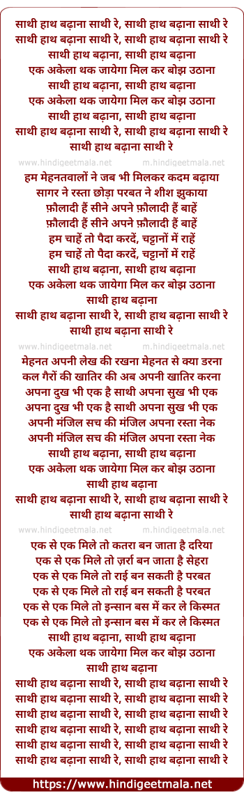 Lyrics of Saathi Haath Badhanaa Saathi Haath Badhanaa - साथी हाथ बढ़ाना साथी हाथ बढ़ाना