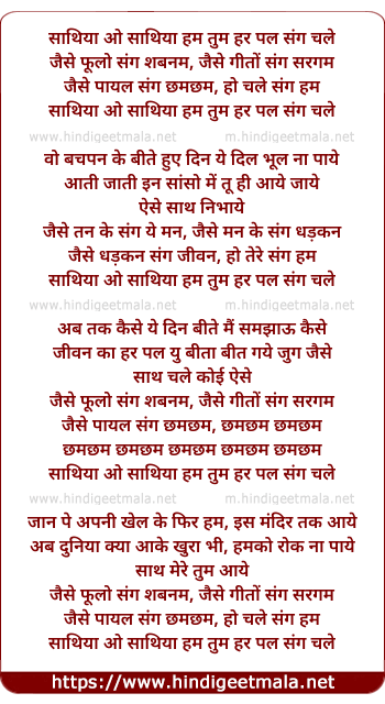 jaise payal sang chhamchham, ho chale sang hum