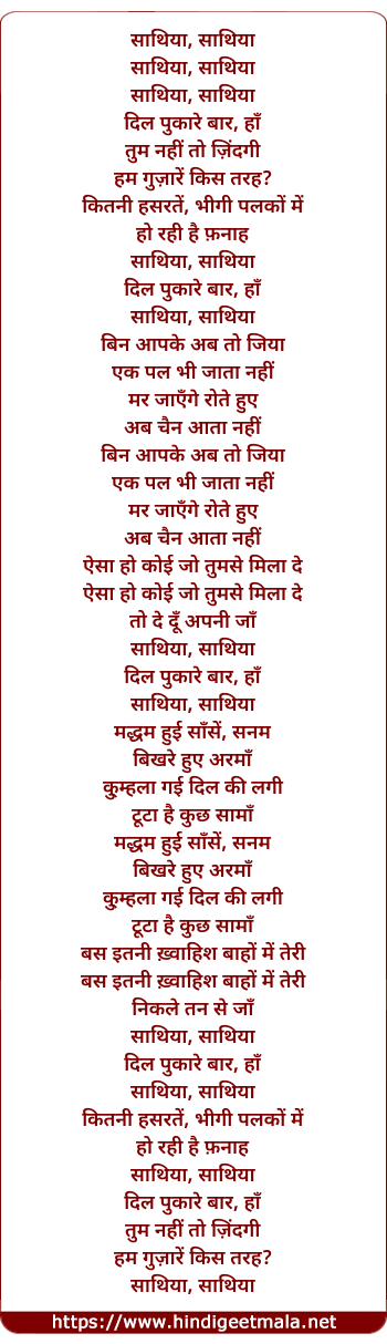 Lyrics of Saathiyaan - साथियां साथियां साथियां साथियां