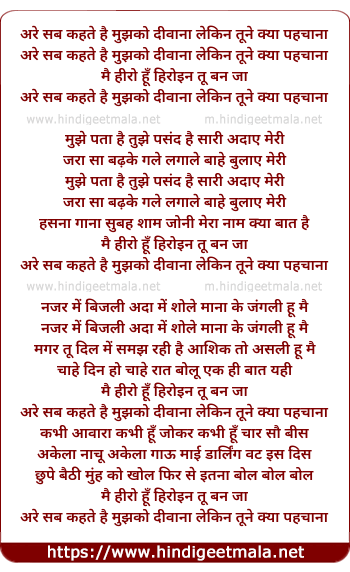 Lyrics of Sab Kehte Hai Mujhko Deewana - सब कहते है मुझको दीवाना