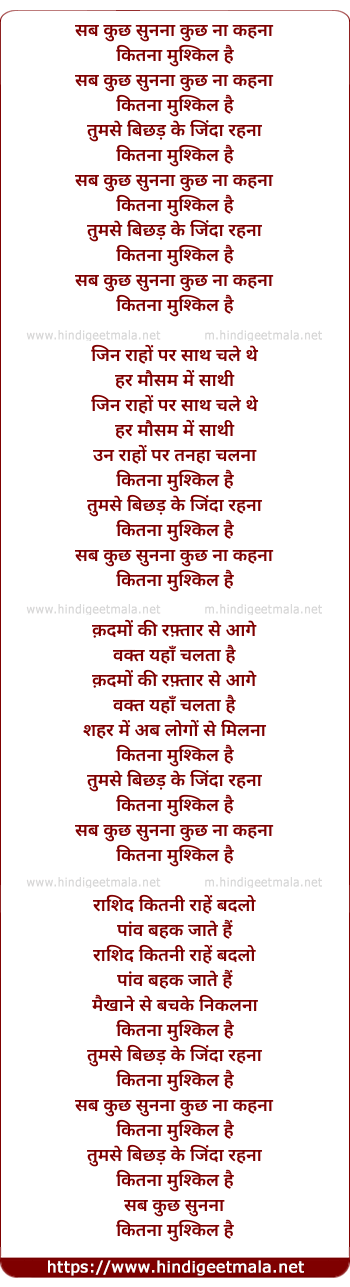 Lyrics of Sab Kuchh Sunna - सब कुछ सुनना कुछ ना कहना