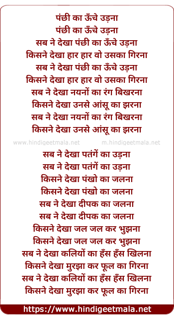 Lyrics of Sabne Dekha Panchi Ka Unche Udna - पंछी का ऊँचे उड़ना
