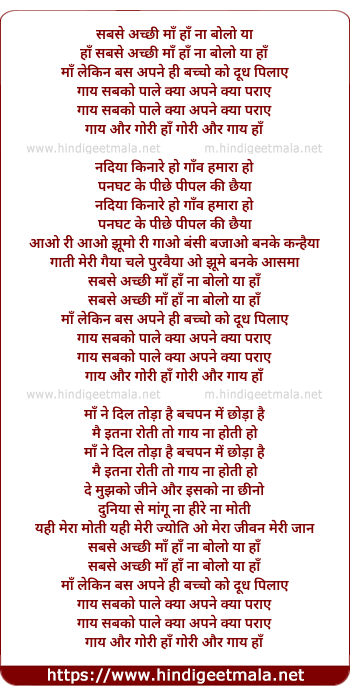 Lyrics of Sabse Achhi Ma Haan, Na Bolo Ya Haan - सबसे अच्छी माँ हाँ, ना बोलो या हाँ