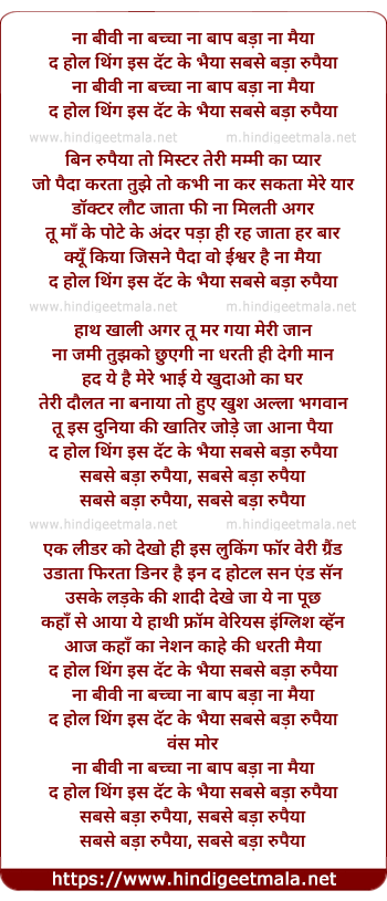Lyrics of Sabse Bada Rupaiya - सबसे बड़ा रुपैया