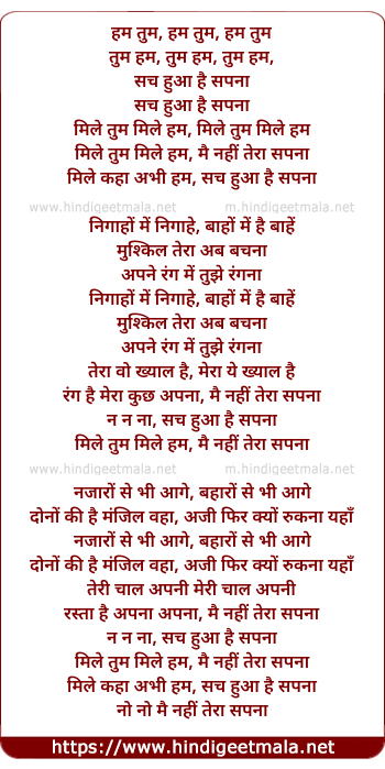 mile tum mile hum, mai nahi tera sapna