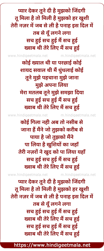 Lyrics of Sach Huyi Sach Huyi - सच हुई सच हुई