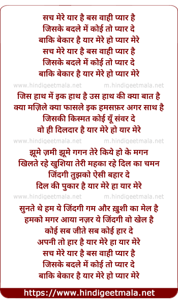 Lyrics of Sach Mere Yaar Hai Bas Vahi Pyaar Hai - सच मेरे यार है बस वही प्यार है