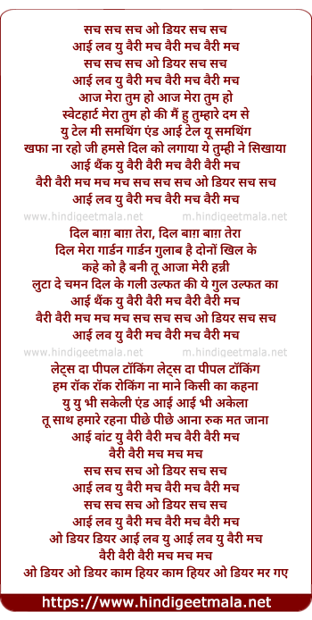 Lyrics of Sach Sach O Dear Sach Sach I Love You Very Much - सच सच ओ डियर सच सच आई लव यू वैरी मच