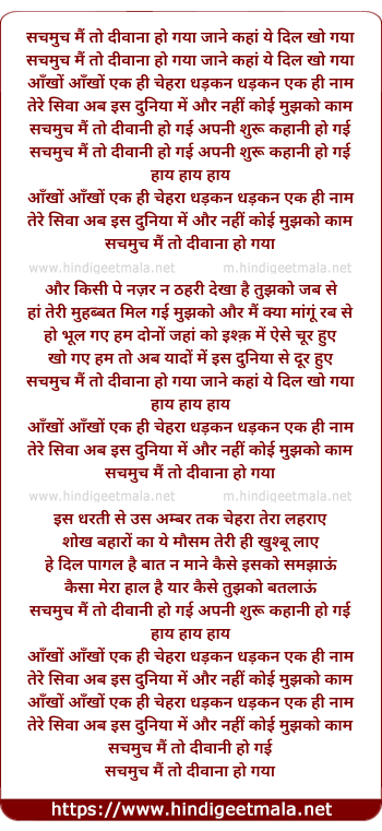 Lyrics of Sachamuch Main To Divana Ho Gaya, Aankhon Aankhon Ek Hi - सचमुच मैं तो दीवाना हो गया, आँखों आँखों एक ही