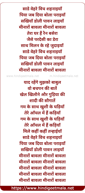 Lyrics of Sade Vehre Vich - साडे वेहरे विच शहनाइयाँ