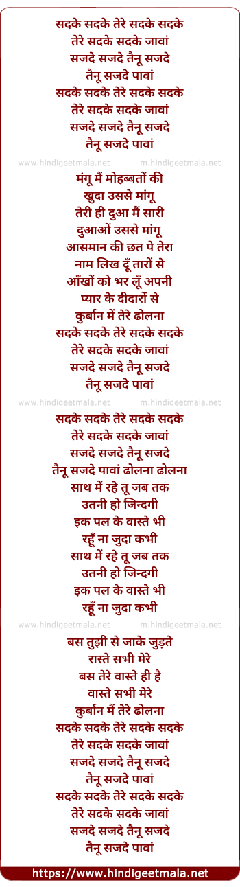 Lyrics of Sadke Sadke Jawan - सदके सदके जवान