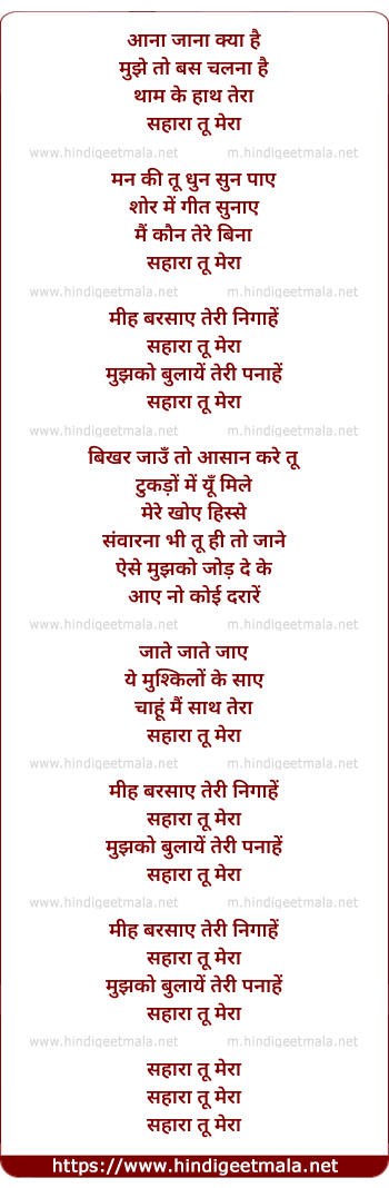 Lyrics of Sahara Tu Mera - सहारा तू मेरा