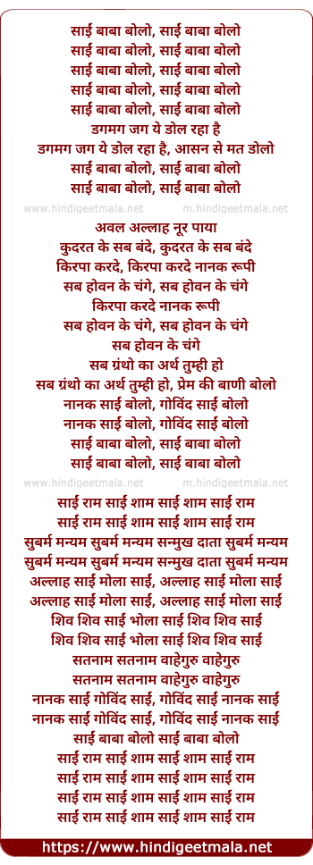 Lyrics of Sai Baba Bolo, Sai Baba Bolo - साईं बाबा बोलो, साईं बाबा बोलो