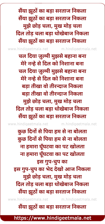 Lyrics of Saiya Jhutho Ka Bada Sartaj Nikla - सैंया झूठों का बड़ा सरताज निकला