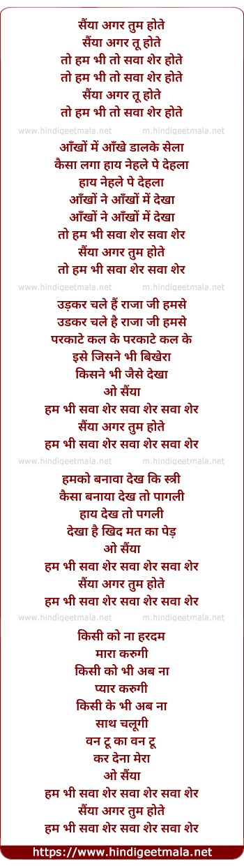 Lyrics of Saiya Agar Tum Ho Ser - सैंया अगर तुम हो शेर