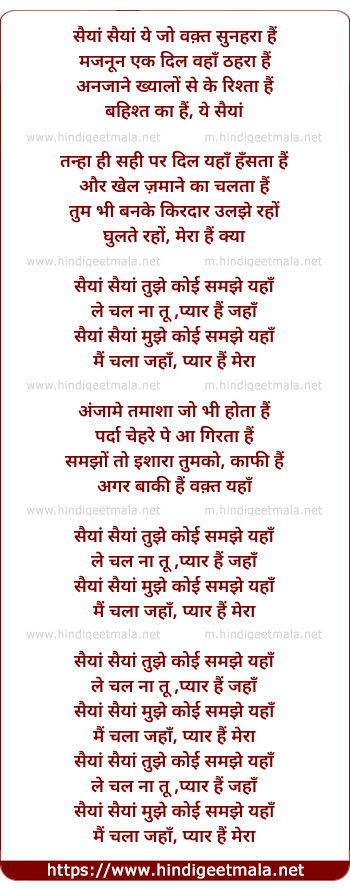 Lyrics of Saiyaan (Lucky Ali) - सैयां सैयां ये जो वक़्त सुनहरा हैं