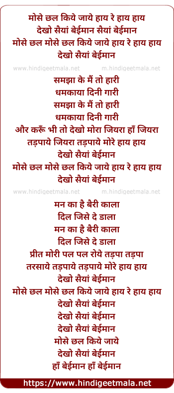 Lyrics of Saiyan Beiman Hai - मोसे छल किये जाये हाय रे हाय हाय