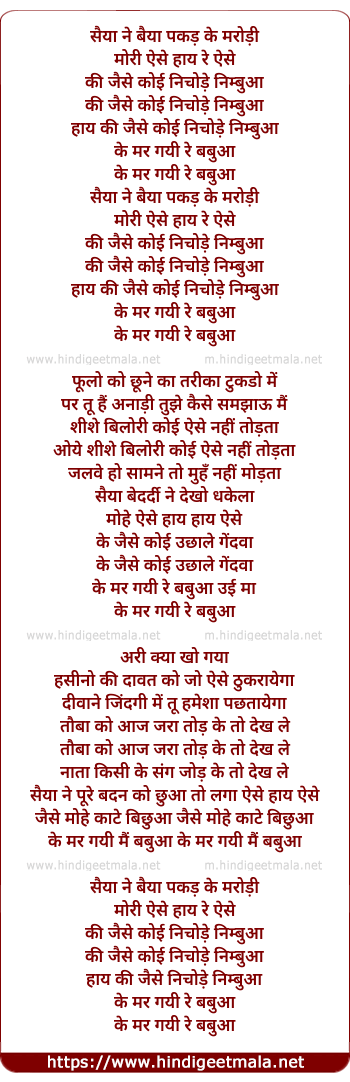 saiya ne baiya pakad ke marodi