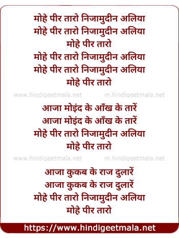 Lyrics of Sajan Mila De - मोहे पीर तारो निजामुदीन अलिया
