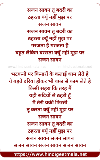 Lyrics of Sajan Sawan Tu Badri Ka - सजन सावन तू बदरी का
