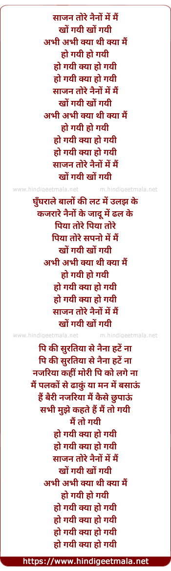 Lyrics of Sajan Tore Nainon Me - साजन तोरे नैनों में मैं