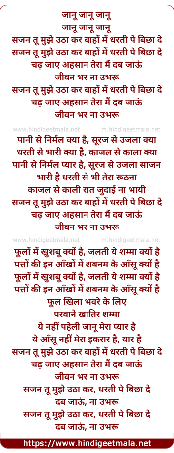 Lyrics of Sajan Tu Mujhe Utha Kar - साजन तू मुझे उठा कर