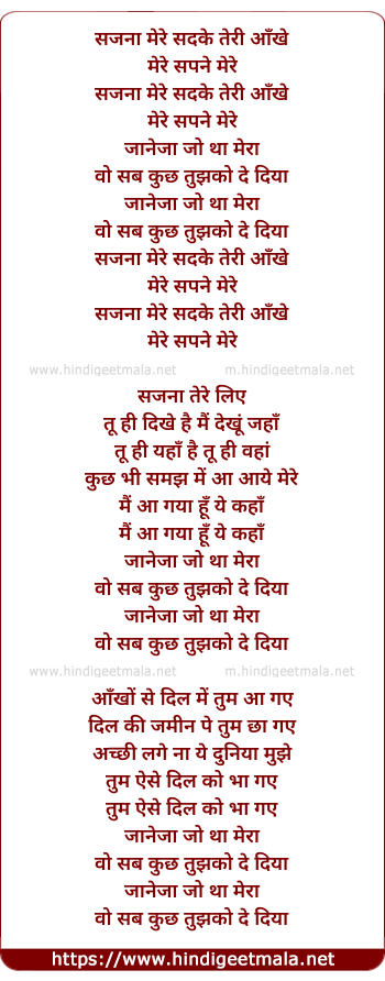 Lyrics of Sajana Mere Sadake Tere - सजना मेरे सदके तेरे