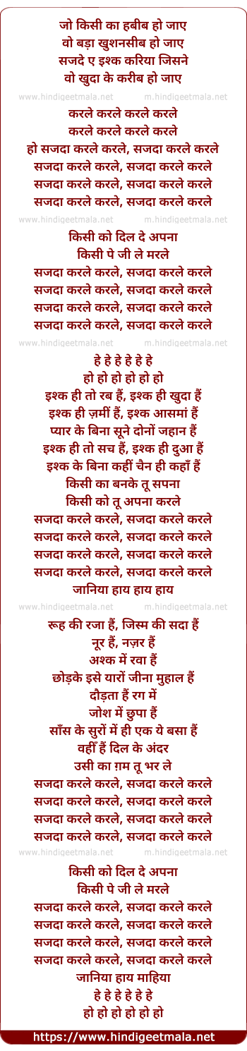 Lyrics of Sajda Karle - जो किसी का हबीब हो जाए