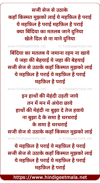 Lyrics of Saji Sej Se Utha Ke Kaha - सजी सेज से उठा के कहाँ