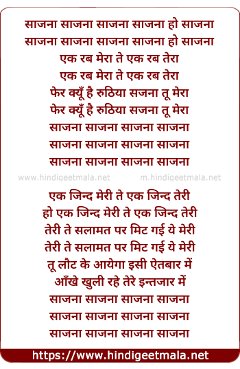 Poetic Translation - Lyrics of Sajna Arabian Sunrise (Remix) - साजना साजना साजना साजना हो साजना