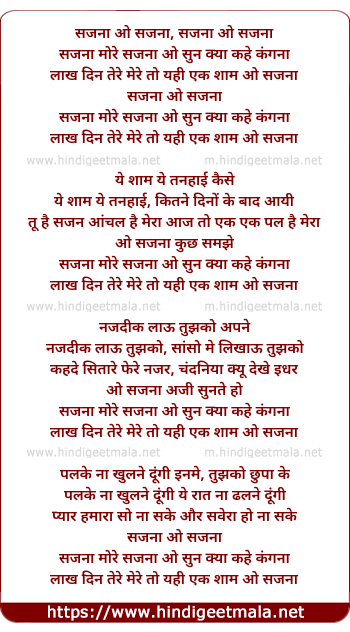 Lyrics of Sajna More Sajna O Sun Kya Kahe Kangna - सजना मोरे सजना ओ सुन क्या कहे कंगना