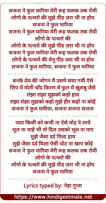 Lyrics of Sajna Ne Phul Mariya - सजना ने फुल मारिया