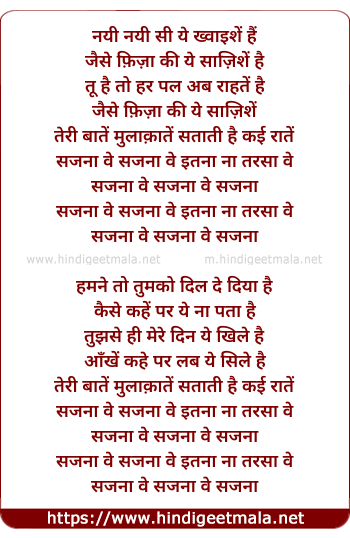 Lyrics of Sajna Ve - नयी नयी सी ये ख्वाइशें हैं