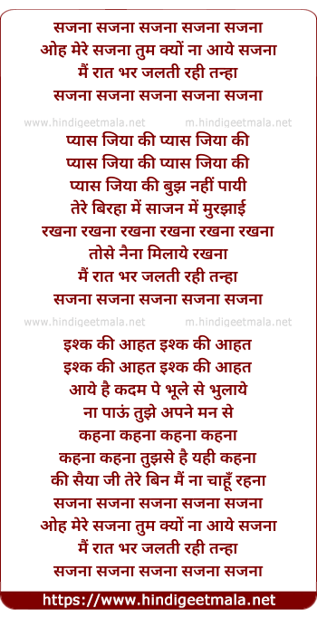 Lyrics of Sajnaa Oh Mere Sajnaa - सजना ओह मेरे सजना