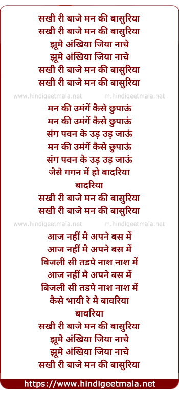 Lyrics of Sakhi Ri Baje Man Ki Basuriyaa Jhume Akhiya - सखी री बाजे मन की बासुरिया झूमे अंखिया