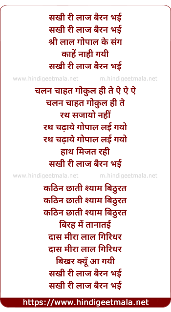 Lyrics of Sakhi Ri Laaj Bairan Bhayi - सखी री लाज बैरन भई