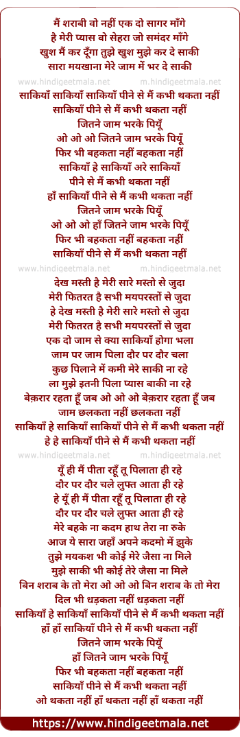 saakiya he saakiya saakiya peene se mai kabhi thakta nahi