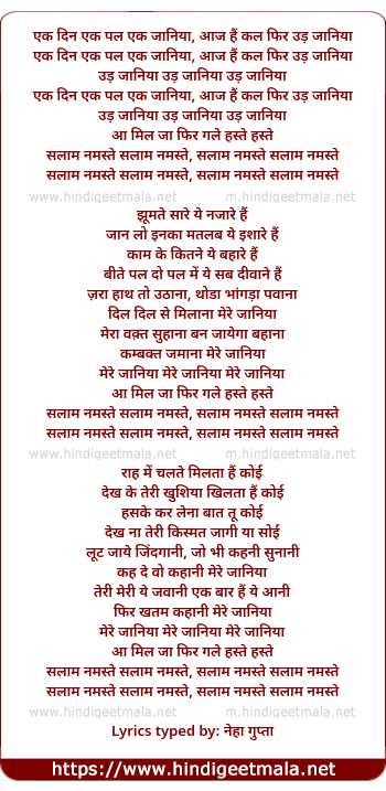 Lyrics of Salaam Namaste - सलाम नमस्ते