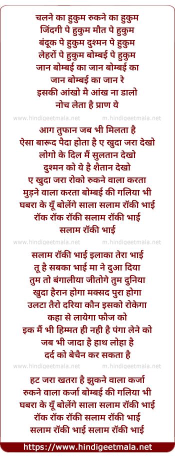 Lyrics of Salam Rocky Bhai - सलाम रोकी भाई