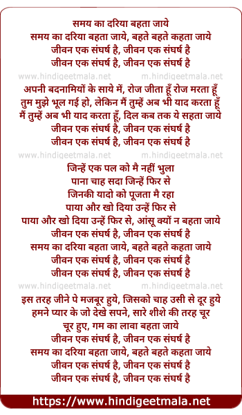 Lyrics of Samay Kaa Dariyaa Bahataa Jaae Jivan Ek Sangharsh Hai - समय का दरिया बहता जाये जीवन एक संघर्ष है