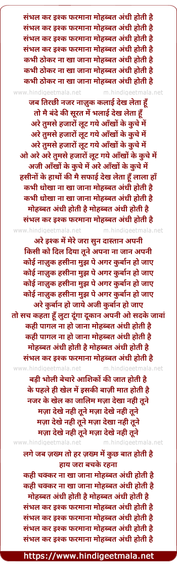 sambhal kar ishq farmana mohabbat andhi hoti hai